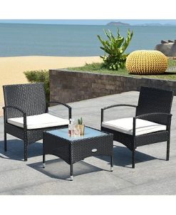 Costway 3 PCS Furniture Set Table & 2 Chair Patio Wicker Rattan W/Cushion