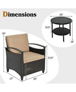 Costway 3 PCS Patio Rattan Furniture Set Coffee Table & 2 Rattan Chair