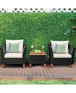 Costway 3PCS Outdoor Patio Rattan Furniture Set Wooden Table Cushioned Sofa
