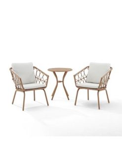 Crosley Griffith 3 Piece Metal Outdoor Conversation Seating Set – Two Chairs With Side Table