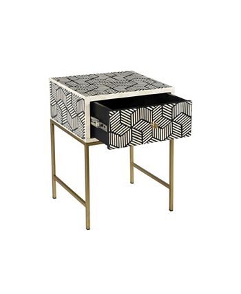 Handcrafted bone-inlay mosaics give this otherwise simple occasional table an undeniable sense of luxury. Available in two color options to fit your decor needs.