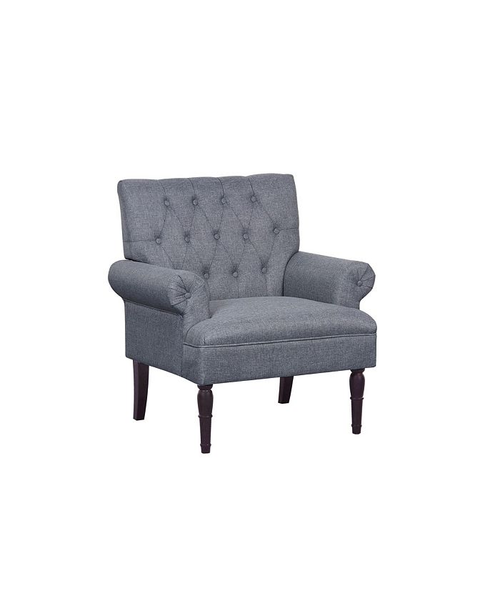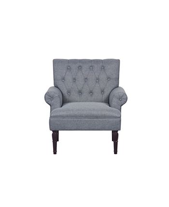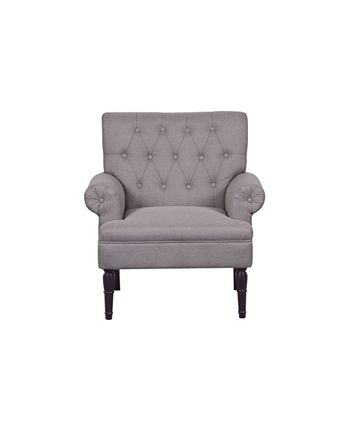 Have a luxurious seat with the Lux Armchair. The chair is made with natural fabric. A beautiful traditional-inspired design with rolled arms and button tufting with smooth linen fabric upholstery.