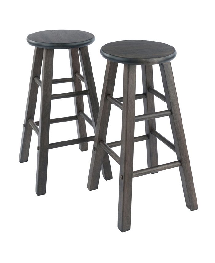 The 2-piece Element 24″ counter stool set, finished in a contemporary oyster gray, boasts simplicity of design along with the durability and appeal of solid wood. With squared legs and 2 sets of 4 crossbars for enhanced stability, the stools will blend effortlessly with any decor.