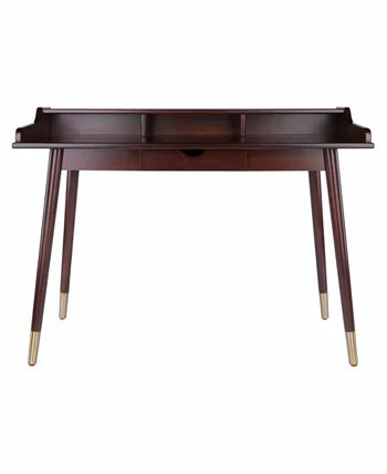 Whether studying, working from home, or simply catching up on social media, the Winsome Sonja writing desk will bring mid-century modern flair and energy to your home. Along with a 47″ wide desktop, a streamlined hutch with three compartments offers additional surface and storage space.