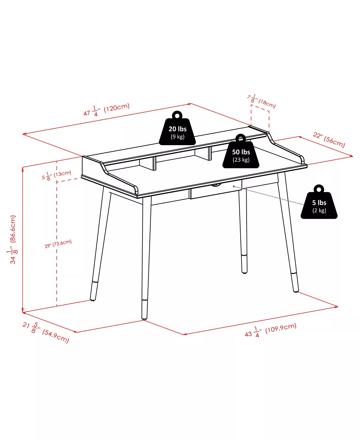 - Product dimensions- 47.24″ L x 22.05″ W x 34.09″ H